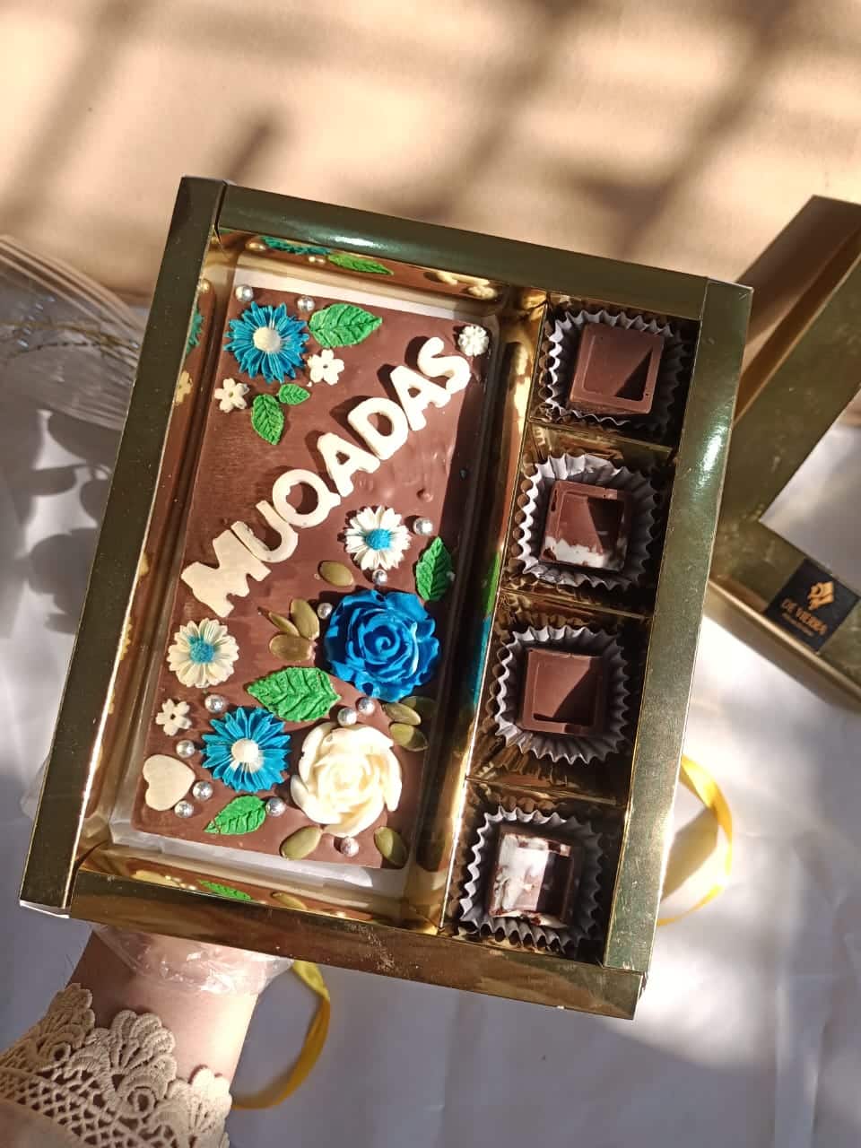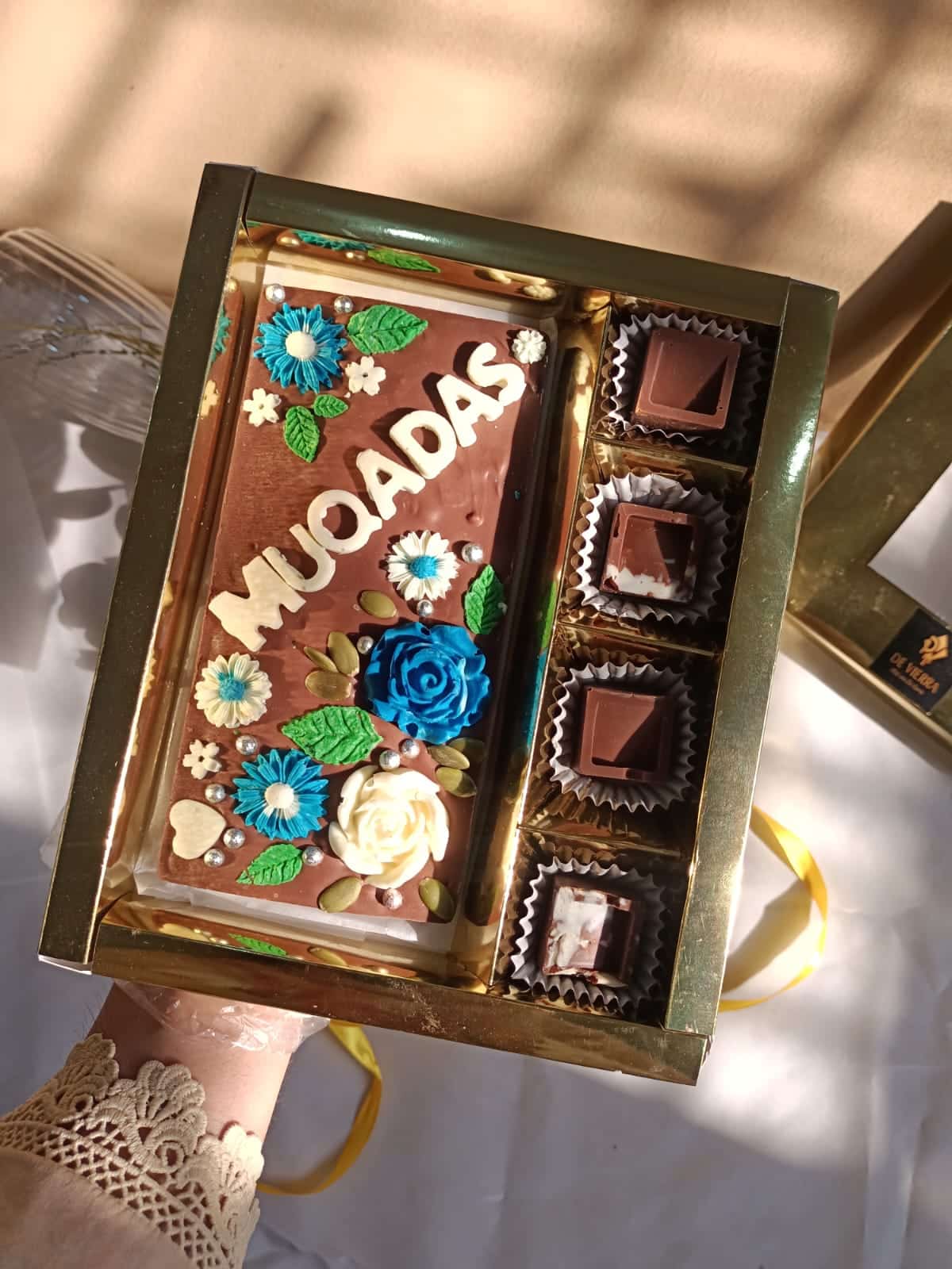 Inspired by nature’s elegance, the De Vierra Bar de Fleur combines fine artisanal chocolate with the visual poetry of blossoms. Handcrafted and naturally tinted with fruit and floral essences, each piece showcases intricate, colorful flower motifs that make it as stunning to behold as it is to savor.